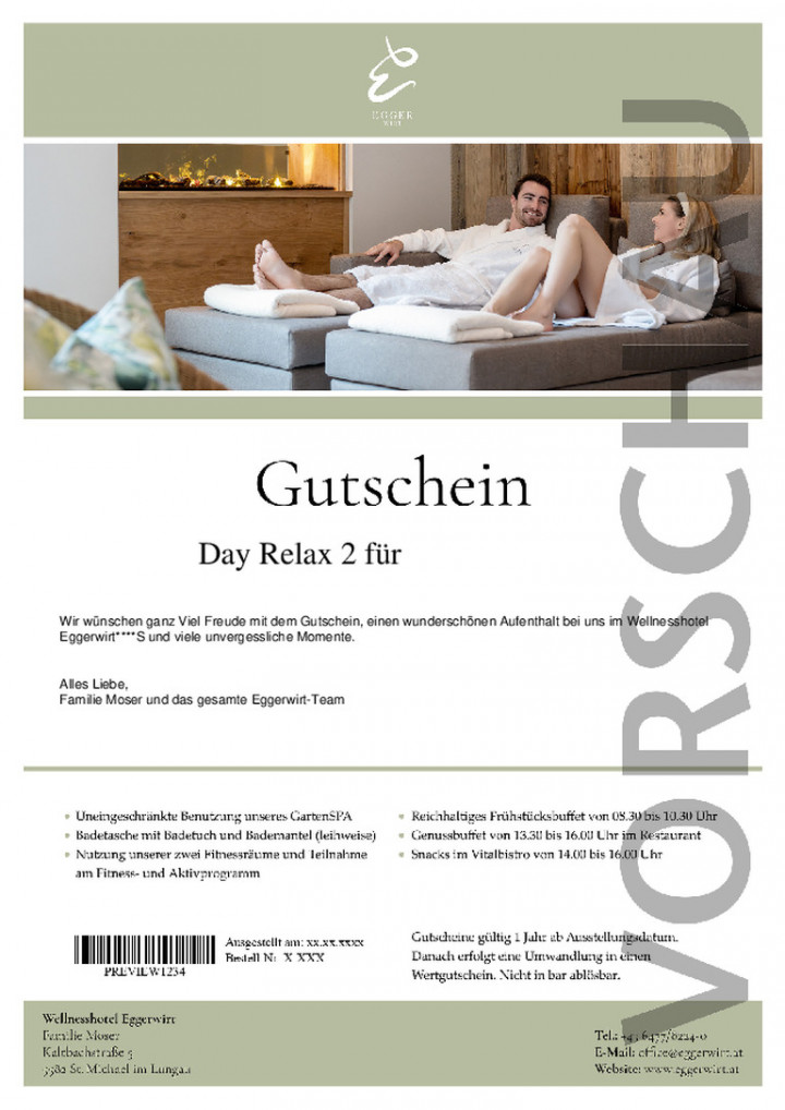 Wir wünschen ganz Viel Freude mit dem Gutschein, einen wunderschönen Aufenthalt bei uns im Wellnesshotel Eggerwirt****S und viele unvergessliche Momente.<br><br><br>Alles Liebe,<br>Familie Moser und das gesamte Eggerwirt-Team